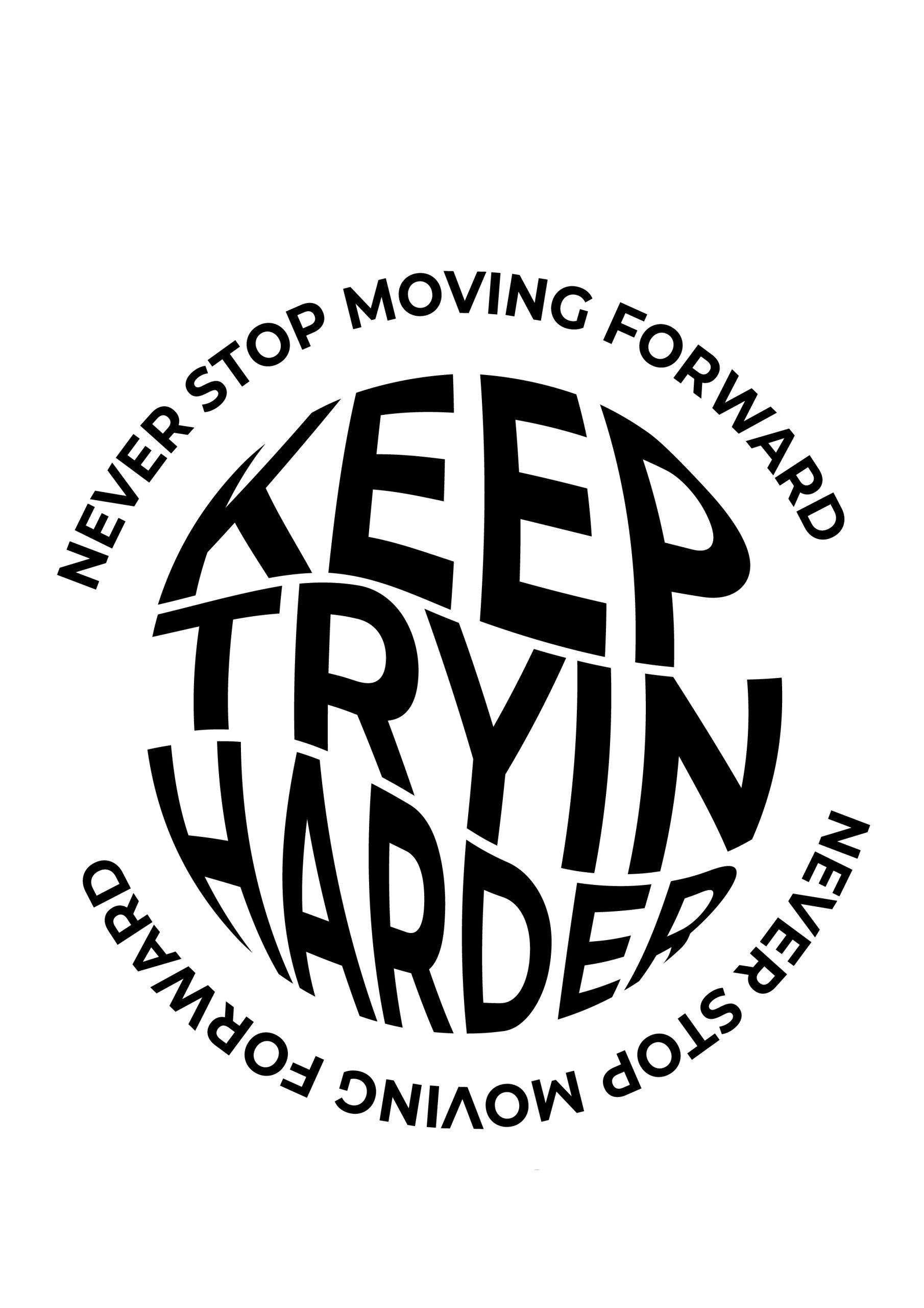 Front: Keep Trying Harder – Never Stop Moving Forward